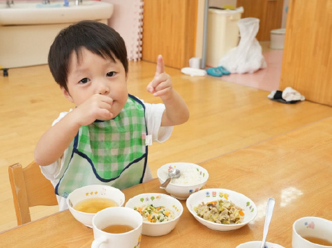 給食管理ソフトを導入していますので、食事を管理しやすく働きやすい環境です。 【当保育園は食育に力を入れています。】 毎日の「おいしいね」を大切にしながら、子どもたちの食育に取り組んでいます。 地産地消にこだわり、旬の食材を使用した季節を感じられる給食を提供。 栄養士が作成した献立をもとに、毎日園内で調理した出来立ての給食を届けています。 また、節分やひな祭りといった行事食を通じて、季節・文化・伝統に興味を持ち、 食べることの大切や楽しさを感じられるようにも工夫しています。 |